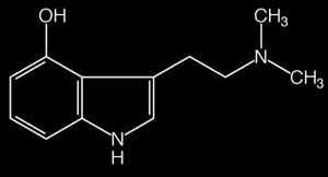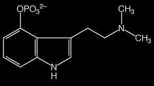 Hlavními účinnými složkami těchto hub jsou indolové alkaloidy psilocybin (vzorec vlevo) a psilocin (vzorec vpravo), v menší míře též baeocystin a norbaeocystin. Psilocybin a psilocin jsou odvozené od tryptaminu, produktu dekarboxylace tryptofanu, obsahujícího indolové jádro. Oba uvedené alkaloidy jsou po chemické stránce příbuzné neuromediátoru CNS serotoninu, alkaloidům reserpinu (přítomnému v početné skupině rostlin rodu Rauwolfia) a harmanu (izolovaného z Peganum harmala) a také známé halucinogenní droze LSD. Psilocybin (4-fosforyloxy-N,N-dimethyltryptamin) je poměrně stálý jeho množství se příliš nemění ani při sušení, ani při delším skladování. Psilocin je nepoměrně více labilní než psilocybin (snadno oxiduje a poté se rozpadá), co do účinku je ale psilocin oproti psilocybinu asi 1,4x silnější. Množství psychotropních složek v houbách je značně proměnlivé v závislosti na druhu houby i na místě výskytu. K zjištění zda houby vůbec obsahují psilocybin či psilocin lze použít malý test na principu papírové chromatografie. Aktivní dávka psilocybinu pro člověka při podání ústy je 10mg (a tedy psilocinu asi 6mg). Po konzumaci hub vzniká v organismu psilocin defosforylací psilocybinu účinkem alkalické fosfatasy. Z organismu je vyloučen psilocybin a jeho metabolity během 8 hodin z 80-85 procent (moč asi 65%, stolicí asi 15-25%). Zbytek se ukládá v tukové tkáni, a postupně se vylučuje během dalšího týdne. Asi 25% psilocybinu se vylučuje močí ve formě psilocinu. Psilocybin i psilocin se dají vyrábět plně synteticky. Nicméně pokud se tato syntéza provádí, připravuje se většinou psilocybin (kvůli větší stálosti). Tyto dva alkaloidy lze také získat jednoduchou extrakcí. Z chemického výzkumu vyplývá, že psilocybin a psilocin jsou přítomny i v dalších druzích hub. |