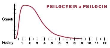 Příznaky intoxikace psilocybinovými houbami jsou podobné intoxikacím jinými halucinogenními látkami jako jsou meskalin, lysergamid či LSD (avšak bez prudkého myšlenkového tempa a agitovanosti LSD, a bez změn osobnosti občas se vyskytujícím u meskalinu). Projevy těchto intoxikací jsou rozdílné intenzity podle vnímavosti a dispozice uživatele. Doba, po které se začínají projevovat účinky alkaloidů psilocybinových hub, závisí na způsobu jejich použití i vnímavosti intoxikovaného. Jsou-li houby dobře rozžvýkány a ponechány delší dobu v ústech, objevují se první příznaky asi po 10 minutách. Spolknuté houby způsobují delší prodlevu (asi 40 minut) a zároveň i zhruba poloviční účinnost díky proniknutí pouze poloviny účinných látek žaludeční a střevní stěnou. Počáteční příznaky intoxikace jsou bolesti hlavy, pocity neklidu a malátnosti spojené s bezděčným zíváním (často bez ospalosti), výjimečně křeče, poruchy rovnováhy, třes a pocení. Psychickými příznaky jsou deformace vnímání objektivní reality (později plynule přecházející v pocity rozbití a prohloubení časových a prostorových souvislostí, deformace tváří a osob, všechny barvy nabírají teplé pastelové odstíny, kaleidoskopický efekt), dále jsou přítomny změny nálady, stav euforie, pocit štěstí, jen výjimečně deprese a podrážděnost (toto do značné míry závisí na psychickém stavu předcházejícímu aplikaci). Častými projevy jsou též nauzea, zimnice a slabost v nohou. Tyto pocity mají většinou krátké trvání a jsou během 30 minut vystřídány celkovým tělesným uvolněním. Otrava psilocybinem a psilocinem, trvá (s výraznými projevy) většinou 5-6 hodin (viz graf) a je příčinou již uvedených zrakových halucinací, psychózy spojené s depersonalizací, poruch vnímání času, směru i vzdálenosti. Spolu s halucinacemi vznikají falešné představy, intoxikovaný je vystaven ukvapeným rozhodnutím, které mohou být příčinou nehod a úrazů. Intoxikace většinou končí náhle (údajně ji lze přerušit např. barbituráty či neuroleptiky). Akutní toxicita hub je poměrně nízká (smrtelná dávka psilocybinu pro člověka je asi 17 gramů). Největší nebezpečí psilocybinových hub spočívá v riziku neuvážených ukvapených rozhodnutí, které mohou být příčinou různých zranění až smrti. Informace o tom jak postupovat při vzniku psychózy po intoxikaci houbami, naleznete zde. Existuje zde i určité nebezpečí pro toho, kdo vezme houby v nevhodné situaci. Houby nejsou vhodné pro lidi, kteří se snaží uniknout před svými problémy do světa halucinací. Psilocin a psilocybin je jakýsi spouštěcí mechanismus, rozšiřuje vědomí člověka a ten pak uvidí sám sebe a to nemusí být jen hezké, může to být i dost drsná zkušenost (to jsou většinou lidé skákající z oken). Hlavním zdravotním rizikem spojeným s užíváním těchto hub, stejně jako dalších psychotropních látek, je projevení se dosud latentních psychických chorob, tedy chorob, pro něž má jedinec vlohy a které zatím ještě nepropukly (např. schizofrenie). Poměrně podstatným faktorem při dlouhodobé aplikaci těchto hub, je vznik tolerance. Na lysohlávky si lze již během krátké doby užívání vytvořit značnou toleranci. Při pokusech s psilocybinem se během 21 dní zvedla dávka z 1,5 mg na 27 mg, přičemž 22. den již subjekt téměř nereagoval na dávku 15 mg. To také vysvětluje proč někomu stačí 10 klobouků lysohlávek, zatím co někdo jich potřebuje k dosažení stejných účinků přes 40. Navíc při častém opakování také ztrácí zážitek s lysohlávkami svou "božskost", takže je nejlepší omezit se pouze na 4 až 10 dávek ročně. Účinky psilocybinu mohou být ještě zvýrazněny (až zdvojnásobeny) některými inhibitory MAO (enzymu monoaminooxidasy - např. harminem a harmalinem). Kombinace s marihuanou zvyšuje vizualizaci a poruchy vnímání, způsobuje však ukončení "tripu", proto pokud se používá tato kombinace tak se marihuana kouří až ke konci, kdy posiluje již skomírající efekty. |