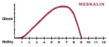 Zmíněné halucinace provázejí depersonalizační pocity, změny v hodnocení času a místa, derealizace a zvláště obtížně popsatelné emoční stavy. Konzument má změněno vnímání, pozoruje barevné záblesky a rozmanité, rychle se měnící geometrické obrazce. Dochází k deformacím tvarů okolních předmětů i osob, předměty se "tváří" a projevují se mimikou. Intoxikovaný mívá zbystřené vnímání, zvláště sluch, zvuky však není schopen přesně lokalizovat, stejně jako polohu svého těla. Vše je provázeno špatným odhadem vzdálenosti, čas probíhá buď pomalu, nebo naopak rychle. Za typické pro intoxikaci meskalinem bývají považovány synestézie (vnímání vjemu jednoho smyslu jiným smyslem, např. vidění zvuku). Podobně jako i u jiných psychedelik je pro projevy intoxikace meskalinem rozhodující osobnost intoxikovaného. Podle literárních údajů nevyvolává konzumace peyotlu (jako ostatně většiny halucinogenů) návyk. V medicíně se objevily snahy o využití této látky v psychiatrii k podpoře psychoterapie (podobně jako u LSD, byly tyto snahy potlačeny). Zajímavé bylo zjištění, že opakovanými intoxikacemi meskalinem stoupala tolerance jak vůči této látce, tak i vůči LSD. To znamená, že zde existuje zkřížená tolerance mezi oběma halucinogeny. Mimo výše uvedené účinky dochází po podání peyotlu (stejně jako po podání meskalinu) k lehkému zrychlení pulsu, zvýšení krevního tlaku, zvýšenému pocení a slinění, někdy i ke zvýšení tělesné teploty. Nevýraznější fyziologickou změnou je mydriáza (rozšíření zornic). Perorálně účinná dávka samotného meskalinu je 0,3-0,6g. Látka se snadno vstřebává, koncentruje se v ledvinách, ze 60-70% se vylučuje močí v nezměněné formě a menší množství v podobě N-acetylované či O-demethylované formy. Nehromadí se v mozkové tkáni. |