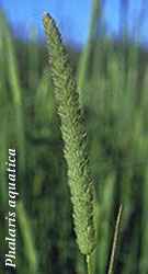 Phalaris arundinacea (dříve nazývaná Baldigera arundinacea) je vlhkomilná travina. Má sivozelený oddenek plazivý, článkovaný, šupinatý. Stébla jsou přímá, 0,5-2m (výjimečně až 3m) dlouhá, pevná, hladká, na bázi šupinatá. Tmavozelené listy mají 10-35 cm dlouhé a 0,6-2 cm široké, ploché a dlouze zašpičatělé čepele. Pochvy listů jsou hladké, úzké, dolní někdy drsné, bílé blanitě lemované, jazýček 0,6-1cm, dřípený. Lata je úzce podlouhlá 10-25 cm velká, laločnatá často načervenalá, zřetelně větvená, větévky až 5 cm dlouhé, drsné, za květu rozestálé, klásky jsou 5-6,5mm velké, kratičce stopkaté, zploštělé s jedním květem. Obilky jsou okoralé asi 1,7mm velké.