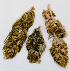 | Droga z konopí indického se vyskytuje ve dvou základních formách, (marihuana a hašiš). V prvním případě jde o suché části samičí rostliny, především květenství, kdy obsah účinných látek nepřesahuje 8-12 % (u nás obvyklý obsah je 1-2%) a v druhém o vlastní pryskyřici s účinnými látkami okolo 40 %. Někdy se z konopí připravuje také hašišový olej s obsahem vlastního THC kolem 20%.  Konopí jako droga - Marihuana | nahoru |