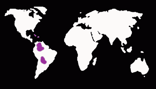 Několik druhů tohoto rodu roste v tropických oblastech Jižní a Střední Ameriky (viz mapka). Rostlina Anadenanthera peregrina se v některých oblastech nepochybně pěstuje, přirozeně však roste na travnatých pláních v povodí řeky Orinoka ve Venezuele a v Kolumbii, v řídkých lesích jižní části Britské Guayany, v severní části brazilské Amazonky v povodí řeky Rio Branco, ale i na Karibských ostrovech. Občas roste i v izolovaných částech savany v oblasti Rio Madeira. Pokud se vyskytne v jiných oblastech, byla sem pravděpodobně zavlečena Indiány. Z některých důkazů je zřejmé, že před sto lety se tento strom pěstoval i v oblastech přesahujících jeho dnešní přirozené naleziště (Anadenanthera peregrina byla například rozšířena v Západní Indii), dnes však těchto lokalit rychle ubývá. Další druh Anadenanthera colubrina roste hlavně v severozápadní Argentině. Okolo města Salta se rozprostírají na pahorcích celé lesy těchto stromů. |